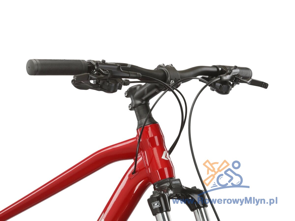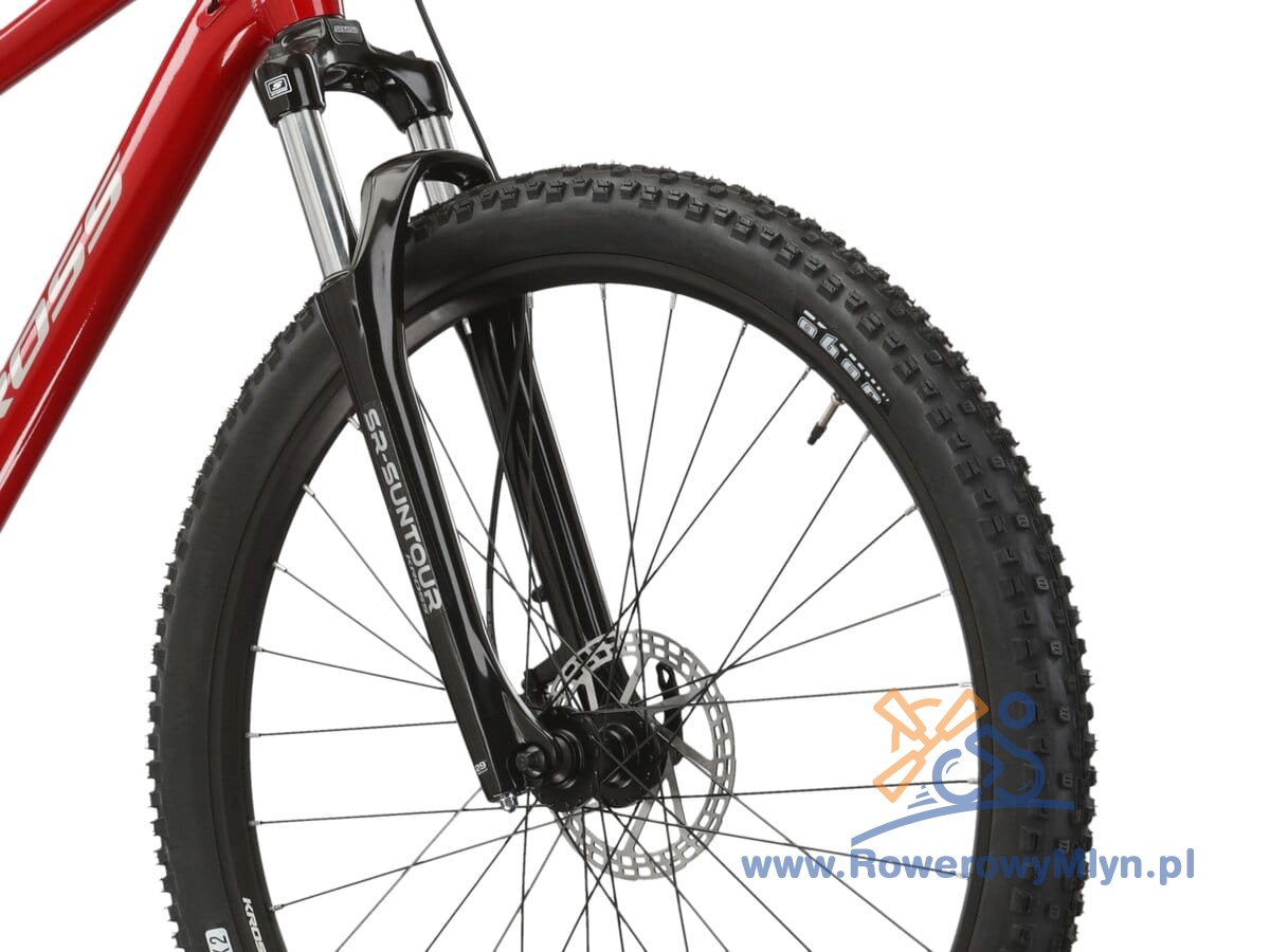 Amortyzowany widelec SR Suntour ze skokiem 100 mm zapewnia wysoką kulturę pracy oraz doskonałe tłumienie wibracji powstających podczas jazdy po nierównej i wyboistej nawierzchni.